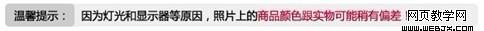 关于照片的另一个大问题是色差,卖家在拍摄商品时一定要注意环境光线的把握,如果出现色差后期一定要调整好,但尽管如此,由于用户显示器的颜色偏差,还是会出现不符,因此加上下面这句话是很有必要的: