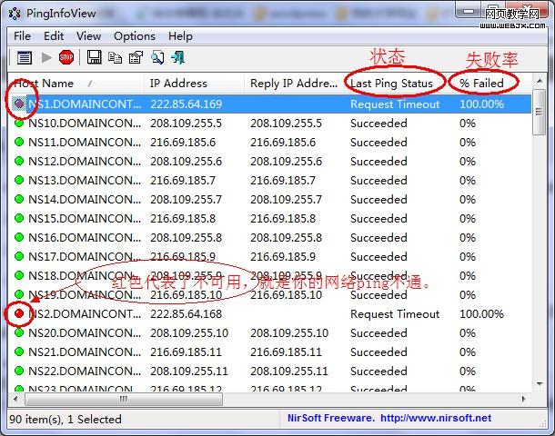 建议用excel把NS1.DOMAINCONTROL.COM按序列生成1到90,复制到记事本刷掉格式,然后再复制记事本内容直接粘贴到弹出的Ping Options窗口中。