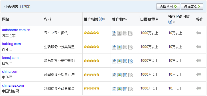 如此多的联盟网站就需要广告主对其进行选择,或全网投放,或按地域,或按行业,或按质量度……总之,推广内容的网站载体可以随心所欲的选择。
