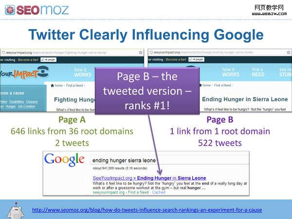 而针对这个论述,他们也做了一个实验,来证实Twitter对于Google排名的帮助: