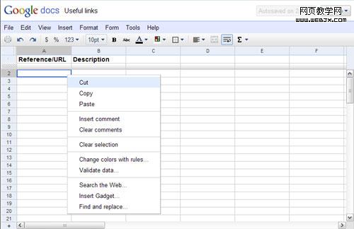 谷歌电子表格通过提供快捷键和上下文菜单让用户更有效率,此外还利用了用户对常见桌面应用程序的熟悉优势。