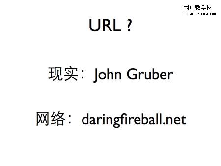 现实生活中,我们谈论一个人和他的观点使用名字,比如那个 John Gruber 怎么怎么样了。而网络上,我们谈论同样的东西,却使用不同的方式。我们会贴出一个 URL : http://daringfireball.net/ 。