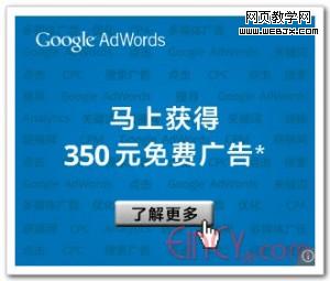 最近,发现博客上的AdSense广告上显示的几乎是Google自己的广告。也就是“马上获得350元免费广告”,如下图。