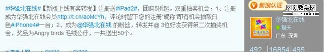 A:我们微博运营的目的很简单,就是让@华强北在线 的官方账号积累更多的粉丝,同时对于每一个用户进行积极的传达,在需要公司发布官方的新闻的时候,也使用官方账号来发布。策略主要是通过每天发布有价值的优质3C商品信息、3C行业资讯、华强北在线的团购信息、数码奇趣等策略来进行运作。