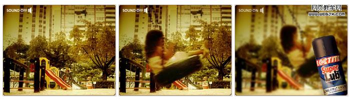 Super Lub 润滑剂广告——广告一上来就是一个小女孩不同的荡秋千,秋千发出刺耳的摩擦声,当你关掉左上角的声音时,产品出现。广告形式简单,瞬间产品的特性就表现的淋漓尽致!
