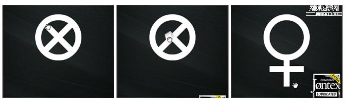 保险套创意广告——一开始是一个禁止符号,当用鼠标向下拖拽,瞬间变成了一个女性符号,广告的创意意味深长
