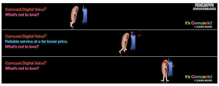 这是一个数字电话的互动广告,用户在banner上左右滑动鼠标,画面上的耳朵就会不停的跟着手机跑来跑去,当追到后就开心的放出心形。