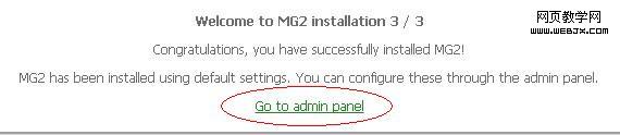 到这一步为止,基本上你的相册就已经建立好了!点击 go to admin panel , 它会提示你输入密码,就是你刚刚设立的密码!