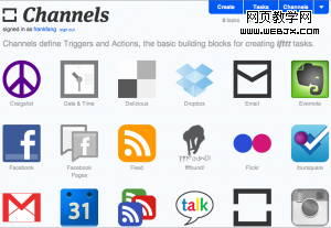 不管是Triggers,还是Actions,他都是需要Channel作为载体的,比如”某人在fb上圈了你“这个是需要fb平台支持的,这时候fb就是一个channel,同理,”你发布一条新的tweet“是需要twitter这个平台支持的,这时候twitter就是一个channel。ifttt为我们提供了许许多多的channel,这些channel包括了互联网中常用的平台,根据这些channel可以创建出无数个task