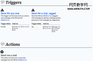 也就说Google Talk这个channel,包括的触发事件有:向ifttt的bot发送一个chat,或者带标签的chat,动作则有:收到一个chat(向我发送一个chat),通过这个可以构建许多有意思的task。