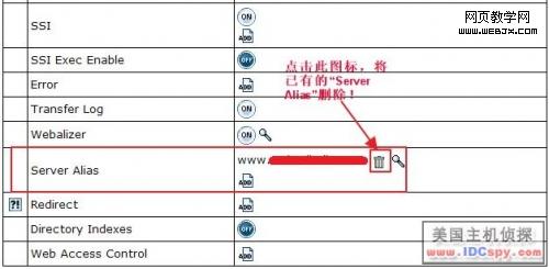 五、接着在出现的“Web Service”界面中,找到“Server Alias”,然后点击已有别名右边的小垃圾筒图标,删除已有的“Server Alias”,如下图