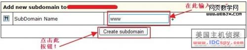七、接着在出现的添加子域名的界面中,按如下图所示进行操作即可,如下图
