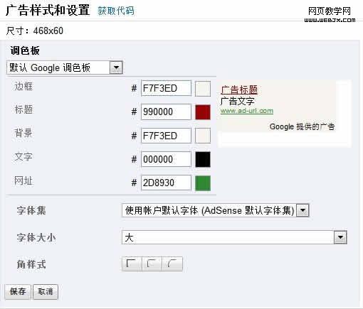 只要简单设置一下,就可以把边框去掉,进入AdSense 后台“我的广告”,找到相应的广告代码在调色板中,把“边框”和“背景”设置为和网页一样的颜色即可。如果你不知道颜色色值,可以使用“屏幕拾色器”来获取它们的颜色值。