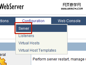 1.菜单Configuration,下拉 Server 设置进入全局设置,如图1: