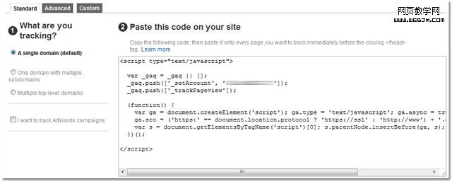 设置帐号之后,首先将必须按照步骤把Javascript编码加到网站的标签之前。如果使用的是WordPress、Blogger、或Tumblr等内容管理/博客平台,就只要把编码加到你的平台或主题上一次;但如果是自制设计的网站,那么就必须手动将编码加到每一个页面,或是和网站开发人员确认网站是如何产生内容的。
