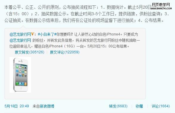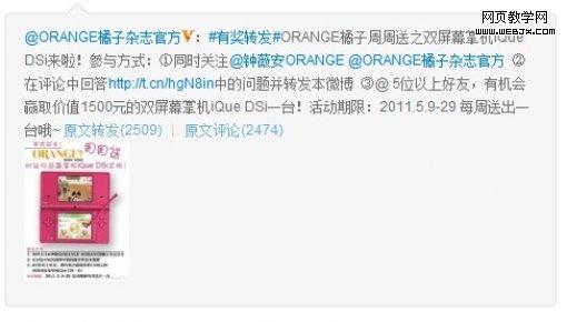 同样是有奖转发,图1-4与图1-1的活动效果差距甚大,先不论两个账号原本粉丝数量多少,就其活动的规则来看,橘子杂志的参与规则比艺龙旅游网要繁琐的多,在评论中回答问题并转发微博已经够繁琐的了,再加上@5位以上的好友,而且只有一台掌机送出,这对于参与者来说参与吸引度远比艺龙差的多,近20天的活动时间才有2509条转播可说明了这些问题的存在。那么企业在策划微博活动时应该注意哪些原则呢?