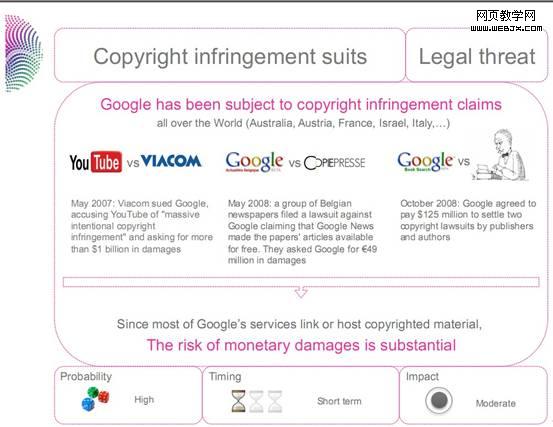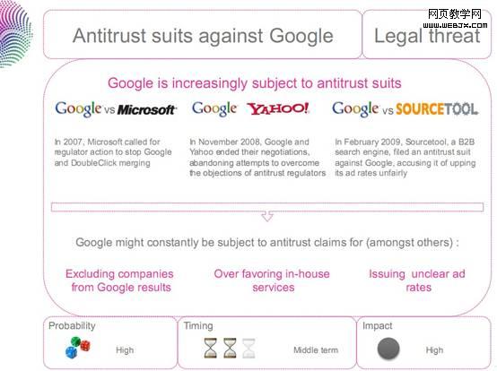 法律威胁:反垄断诉讼、版权诉讼。