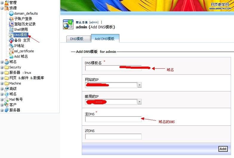 图9-10 先创建一个dns模板,然后就可以开设自已的网站了