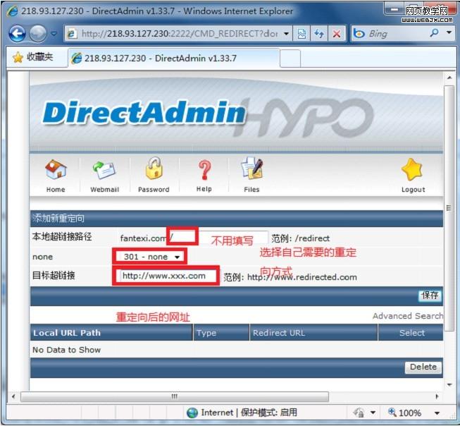 如要把 vpsor.com 重定向到http://www.xxx.com,可按照下图完成 ( 重定向方式 按照自己需求的进行选择)