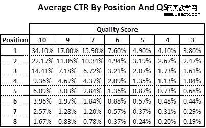 基于上面的理论,你可以预计下面各个位置的平均点击率,以及了解它们如何被转换为质量分: