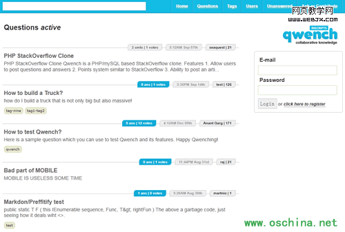 Qwench 是一个用 PHP 开发的问答网站,虽说模仿 Stackoverflow,但界面不太想,相似指数3