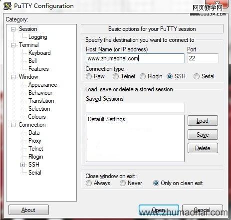 点击左边菜单“Session”,输入Host Name,填入Saved Sessions,并保存,点击“open”,输入用户名和密码之后SSH通道就建立好了。