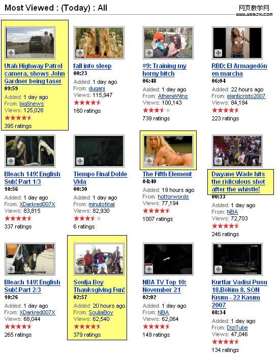 YouTube视频营销的核心概念就是控制该网站的流量。要知道每天YouTube上有8000多万段视频被观看,大部分都来自点击顶部的“视频”页面,这个页面列出了当天浏览次数最多的视频。如果Dan他们成功进入该页面Top 20的话,就可以二十分之一的点击,排名越高,获得的浏览次数越多。