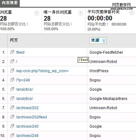 以上步骤完成 等待两小时后 在google analytics后台便可以看到来自搜索引擎爬虫的爬行信息”