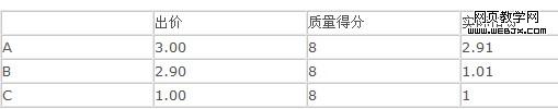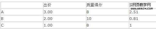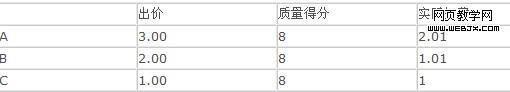 表1中假设三家质量得分相同,A的出价最高,所以按照综合排名公式A得到3*8=24分排第一位,A的实际扣费按照公式得出2*8/8+0.01=2.01元,这个很简单,接下来我们来看表2