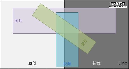 上图中,人人网将新鲜事分为全部、状态、相册、分享、日志和公共主页,而微博中则分为全部、原创、图片、视频和音乐,这些都是以以内容类型进行分类