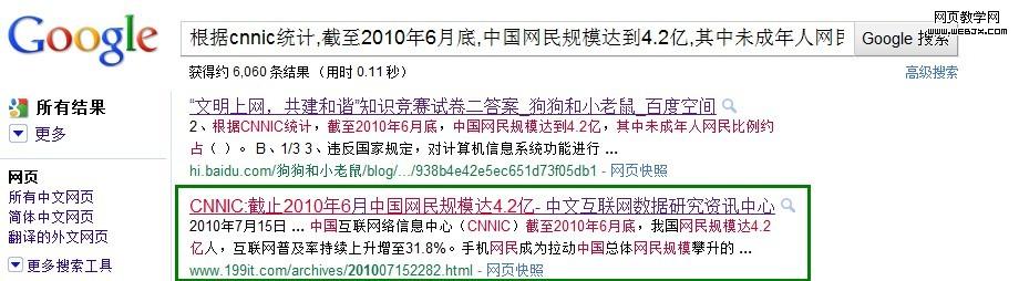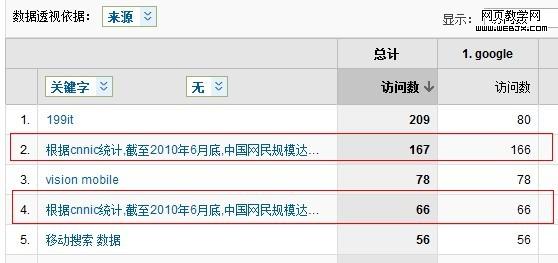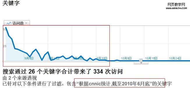 1、根据Google analytics数据显示从9月1日开始一个“根据cnnic统计,截至2010年6月底,中国网民规模达到4.2亿,其中未成年人网民比例约占”突然增长到37个访问数,并持续了一个月左右。如图: