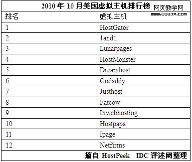 下面,IDC评述网根据资料显示,与大家一起关注十月份美国最佳虚拟主机性能测试。