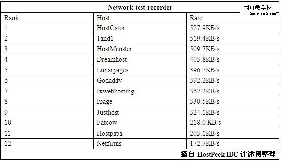毫无疑问,在网络环境测试中HostGator依旧拔得头筹,1and1表现不弱,紧追其后,HostMonster位居第三。