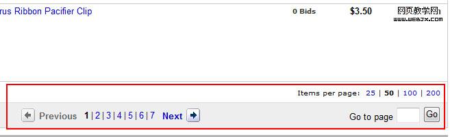 而同样是购物网站的ebay中,在上一页和下一页区域多了一个“每页展现多条搜索结果的区域”而且点击搜索结果是按照排序来,唯一缺憾的是原来结果为50条更换结果为100条后,结果返回了顶端,如果可以返回第50条结果,那用户体验又不是一样啦。