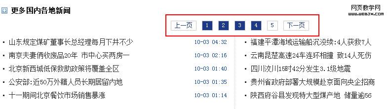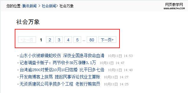 QQ新闻站中的,用的是最常用的方式来展现上一页和下一页,而我点击80页的时候看到的是8月30日(今天是10月11日)的新闻。而同样下副图片是网易的新闻仅显示的是5页内容,且全部平铺开来供用户点击,他的最后页内容是10月1日的。