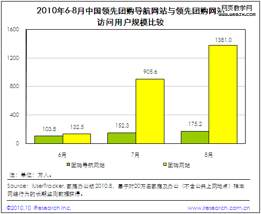 用户规模:较领先的团购网站,团购导航网站用户规模尚有一定差距