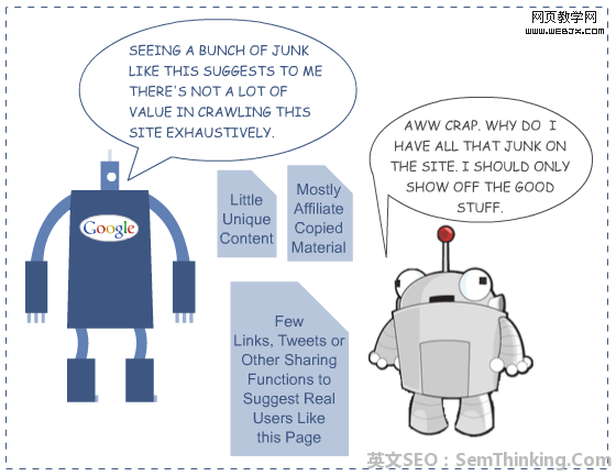 Autoblog就是一个很明显的例子。做英文SEO时,这种类型的垃圾站不是说你装几个插件用scrapebox发两下就能有好的收录表现。Google也有类似对新站的考察期,这点Autoblog Blueprint上也有讲到。