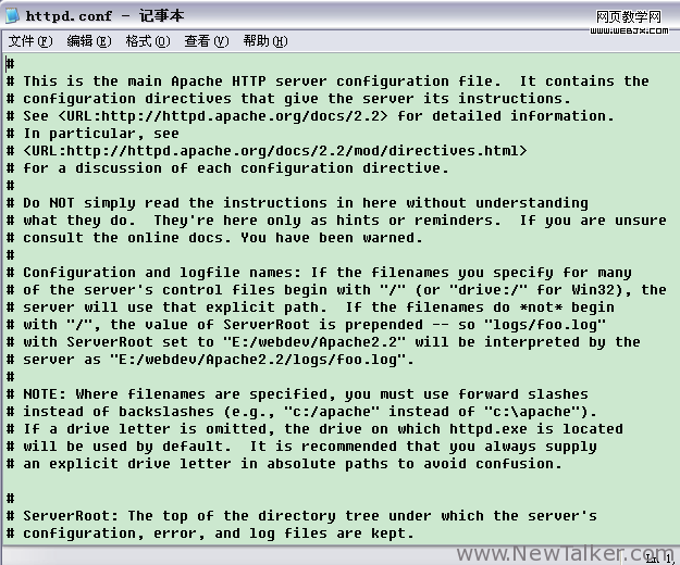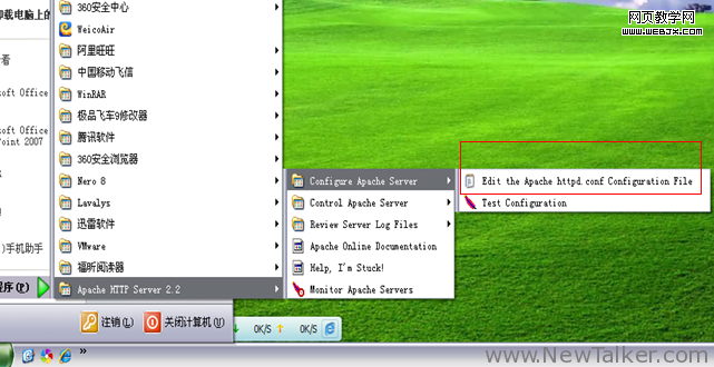 2.2接下来对Apache服务器进行一些简单的配置,首先我们从程序中打开Apache的配置文件,如图: