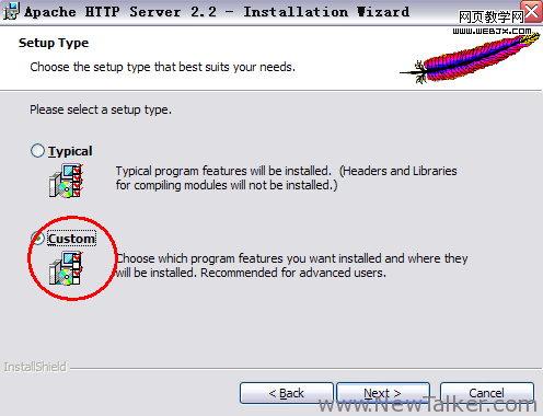 这一步是让你选择2种安装模式类型,“Typical”是经典模式,也就是默认安装模式;“Custom”是自定义安装,就是可以选择安装路径和软件的一些功能选择;笔者此处选择“Custom”;