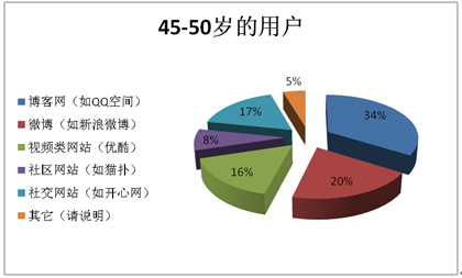 从整体看,博客网站成为各年龄层中最多数人的选择。在社区类网站的选择中,随着用户群体年龄的增长,选择几率呈现出下降的趋势。在30-34岁间的用户群,青睐猫扑、天涯社区网站的人占14.98%;而在45-50岁的用户群中这一比例下降到7.95%,用户比例减少约50%。由此可知,当商家在营销具有明显年龄划分的产品时,例如时尚数码、潮流服饰等,选择社区网站比博客网站更有针对性,使得产品资讯能更准确的击中目标群体,从而实现良好的营销效果。
