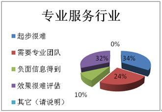 从事专业服务行业的用户认为“起步很难,在没有任何知名度和人气的情况下营销很难”,专业服务行业的有着自己固定的客户群,很难在短时间吸引大量的关注群体,由此建议专业服务行业的用户有针对性的选择社区营销,最好选择社区
