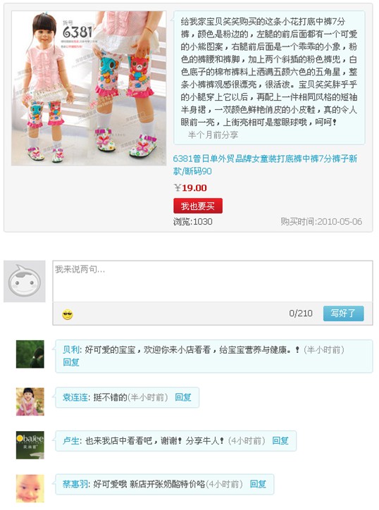 淘宝网用户公开分享的购物评价搜索
