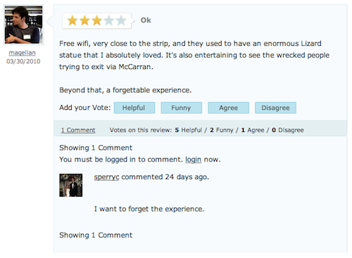 对评价进行评分投票可以增强评价的可信度。你可以将评分最高的评价做成排行榜。投票为评价提供了一种反馈,刺激评价者之间在用户关注度和声誉上进行良性竞争。对于不是客户的浏览者,这个办法是最通用表达观点的方式。允许他们投票打分同时也鼓励了多方的参与。