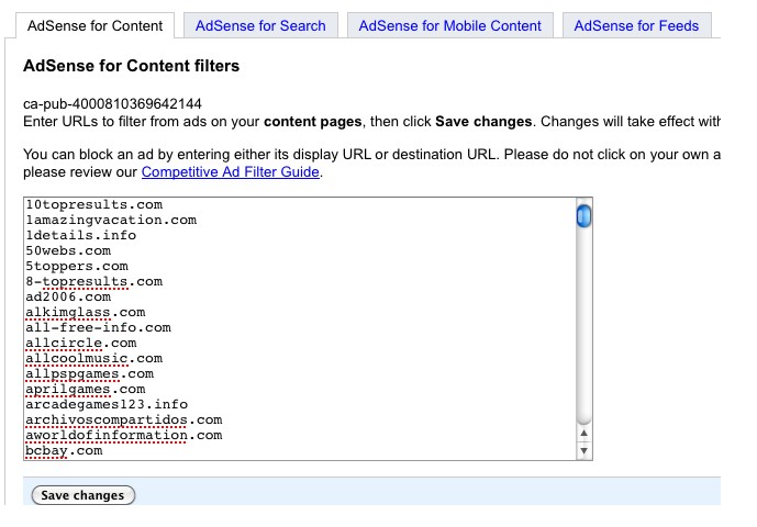 登录我的Google Adsense,在Adsense Setup(Adsense设置)–》Competitive Ad Filer (竞争广告过滤)里面