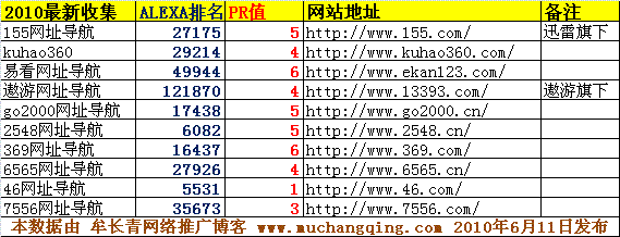 因为导航类网站的竞争激烈,每年会倒下一批,自然也会出现一些新的优秀导航站。这次我又新收集了10个,上面TOP74里没有的。可能是我09年没注意到的或者当时排名没在10W内未收录,也可能是最近1年才推出的新导航站。
