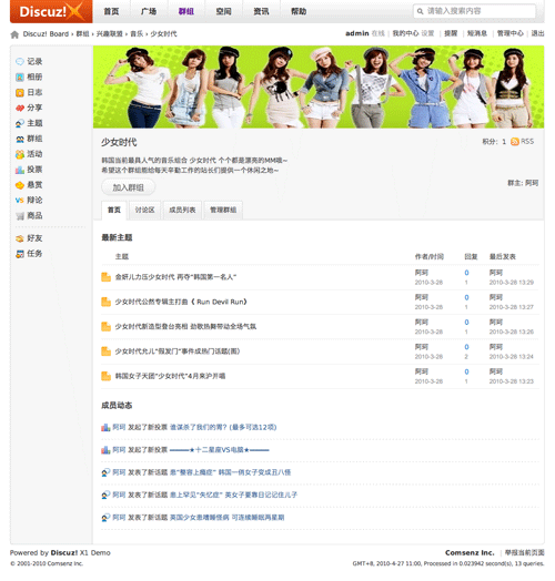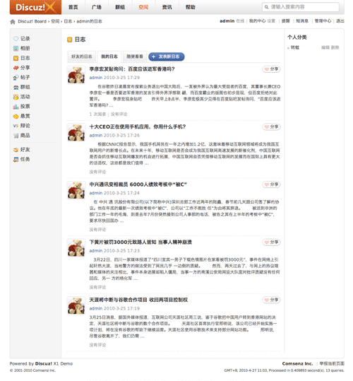 国内知名的社区服务与社交网络提供商康盛创想旗下的新产品Discuz X 今天发布了Discuz X版本下SNS模式的模版,用户可以通过SNS模式将论坛直接改造成社交网络。