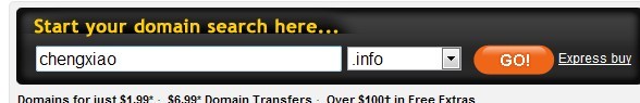 然后我在搜索框内选择info结尾的域名,输入chengxiao.info