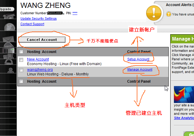 2.1、账户列表:cancel account 千万不能点击!!!!点击后更不能确定!!除非你不想要这个账户或是想退款!!