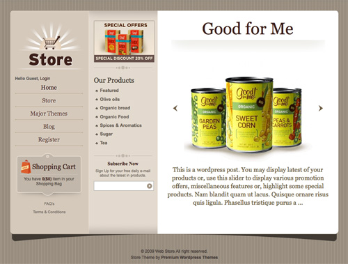 Store Theme – 一套来自 Templatic 的主题,能将标准 WP 换成在线网店