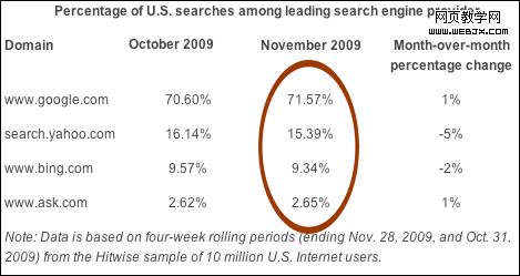 数据供应商Hitwise称,相比2009年12月份,2010年1月份Google在互联网搜索市场的占有率都有所下降,Yahoo的占有率也出现下滑,但是微软Bing的市场占有率有所提高。